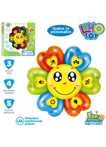 Аудіо-казки Квітка FT 0014 Аудіо-казки FT 0014 "Квітка" - це яскрава та музична інтерактивна іграшка для малюків, виконана у вигляді милої квітки розміром 11,5 см. Іграшка озвучена українською мовою та відтворює казки, пісеньки, лічилочки, а також оснащена світловими та музичними ефектами. Характеристика: Модель: FT 0014 Тип: музична аудіо-іграшка Форма: квітка Розмір: 11,5 см Мова: українська Функції: відтворення казок дитячі пісеньки лічилочки світлові ефекти музика та звуки Живлення: батарейки (входять або купуються окремо) Матеріал: безпечний пластик Упаковка: барвиста коробка Рекомендований вік: від 12 місяців Інтерактивна іграшка FT 0014 "Квітка" - це чудовий спосіб познайомити малюка зі світом казок та пісеньок українською мовою. Вона поєднує в собі розвагу та навчання, стимулюючи розвиток мови, слухового сприйняття та уяви. Компактний розмір, яскравий дизайн та світлові ефекти роблять іграшку цікавою та зручною у використанні. Чудовий подарунок для дитини від 1 року.