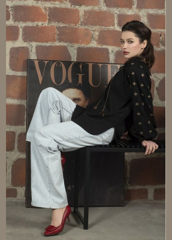КОМЕНТАР СТИЛІСТА Оверсайз-кофта вільного силуету виконана з тисненого трикотажу-рогожки, приємного на дотик та еластичного. Тканина середньої щільності, добре тримає форму та підходить для міжсезоння. Фасон укорочений спереду, з високим воротом-стійкою та застібкою-блискавкою по центру. Рукав прямий, довжиною 3/4, з м’якою посадкою по плечах. Низ виробу зібраний на комфортну резинку, що створює легкий об’єм. Спереду розташовані зручні прорізні кишені. Кофта прикрашена оригінальною вишивкою у вигляді квіткових мотивів та авторських рядків Василя Симоненка, що надає виробу унікальності. Без підкладки. Не просвічує, після прання зберігає форму. Ідеальний вибір для повсякденних образів, прогулянок і кежуал-луків. Фактичні заміри по виробу: Обхват грудей: 42 – 116 см, 44 – 118 см, 46 – 120 см, 48 – 122 см Обхват стегон (верх): 42 – 96 см, 44 – 98 см, 46 – 102 см, 48 – 106 см Обхват низу: 42 – 116 см, 44 – 118 см, 46 – 120 см, 48 – 118 см Ширина у плечах: 42 – 63 см, 44 – 64 см, 46 – 66 см, 48 – 68 см Довжина переду (верх): 42 – 51 см, 44 – 51 см, 46 – 51 см, 48 – 51 см Довжина рукава: 42 – 43 см, 44 – 44 см, 46 – 46 см, 48 – 46 см Рекомендації по догляду: делікатне ручне прання у холодній або теплій воді (30 °C) прати окремо або з подібним одягом не використовувати відбілювачі віджимати вручну, без скручування сушити у розкладеному вигляді, у тіні не сушити в машинці чи на батареї прасувати навиворіт при 110–150 °C для вишивки – прасувати через бавовняну тканину за потреби — хімчистка дотримуватись інструкцій на етикетці