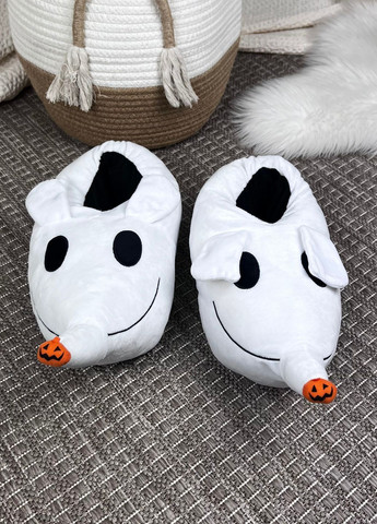 Універсальний розмір 36-43! Теплі м’які тапочки для дому у вигляді кумедного привида-песика. Об’ємний 3D-дизайн з вушками та «гарбузиком» на носику, вишиті очі й посмішка. Внутрішня частина приємна до ноги, краї м’яко облягають стопу. Легка амортизаційна підошва з антиковзним покриттям забезпечує стабільність на підлогових покриттях. Без застібки — просто взути та носити. Підійдуть для щоденного домашнього затишку, подарунка або тематичних вечірок.