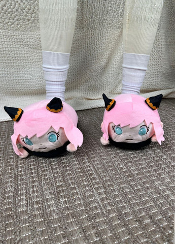 Універсальний розмір 35-42! Плюшеві капці у стилі аніме Аня Форджер. Модель-мюлі без задника легко взувати та знімати, а закритий носок добре тримає ногу й зберігає тепло. М’яка устілка з наповнювачем забезпечує комфорт під час ходьби. Нижня частина виконана з гнучкого ПВХ з мікрокрапками для надійного зчеплення з підлогою — капці не ковзають на ламінаті чи плитці. Акуратні шви, приємний на дотик плюш і легка вага роблять цю пару відмінним вибором для щоденного домашнього використання або як милий подарунок шанувальникам аніме