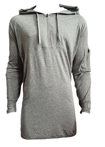 Чоловіча тонка, але щільна толстовка на короткій блискавці, з капюшоном на лаштунці. Відмінно підійде для занять спортом, завдяки поліестеру не зберігає вологу. На рукаві маленька кишеня на блискавку.