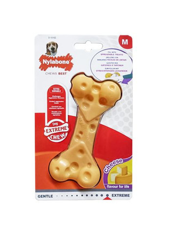Nylabone Cheese Bone – міцна жувальна іграшка для собак, яка має безліч переваг для здоров'я, благополуччя та позитивного психологічного стану вашого вихованця. Іграшка виготовлена з нейлону з порожнинами («кишенями»), які можна заповнити арахісовим маслом, сухим печивом для собак, ласощами та іншими безпечними для вашого вихованця продуктами. Це відмінний спосіб зайняти вихованця у вашу відсутність, допомогти позбутися нудьги та стресу, переключити від деструктивного гризіння до використання жувальних іграшок. Як тільки частування буде з'їдено, собака зможе отримати ще масу задоволення від жування Nylabone Cheese Bone з ароматом сиру, насолоджуючись іншими смаковими відчуттями. Технологія виготовлення іграшок Nylabone унікальна в тому плані, що ароматизатор не розпорошується поверхнею і не включений тільки в покриття, іграшка буквально просочена ним. Тому немає жодних шансів, що цей смачний аромат з часом пропаде чи собака його злиже. Крім того, виробник потурбувався про безпеку собак навіть у цьому аспекті: ароматизатор сиру не містить інгредієнтів тваринного походження. Сирна кісточка Nylabone на перший погляд абсолютно гладка. Насправді її поверхня покрита безліччю крихітних щетинок, які працюють як міні-зубна щітка. Коли собака гризе іграшку, попутно здійснюється догляд за зубами, запобігаючи утворенню зубного нальоту та зубного каменю. Жувальна іграшка для собак Nylabone Cheese Bone відноситься до серії Extreme Chew. Ця лінійка товарів для собак спеціально розроблена для вихованців, які люблять активно гризти, і це у них чудово виходить. ВАЖЛИВО! Nylabone Cheese Bone – не є ласощами! Іграшка не призначена для їжі! Чому варто купити жувальну іграшку для собак Nylabone Cheese Bone: перешкоджає деструктивному гризенню, виробляючи у вихованця правильну звичку жування іграшок, що вбереже від знищення ваші меблі та взуття; допомагає позбутися нудьги, стресу і зайняти вихованця у вашу відсутність; догляд за зубами: спеціальна текстура поверхні масажує ясна, сприяє очищенню зубів та перешкоджає утворенню зубного нальоту та зубного каменю; схвалена ветеринарами; відноситься до серії Extreme Chew – для собак із активним стилем гризіння; насичений смак сиру посилює привабливість жувальної іграшки для собак, аромат зберігається протягом усього часу; контроль ваги: жування іграшки не впливає на норми добового раціону вашого вихованця; порожнини («кишені») на поверхні іграшки можна заповнити арахісовим маслом, сухим печивом для собак, ласощами та іншими безпечними для вашого вихованця продуктами; матеріал виготовлення – міцний нейлон; легко утримувати в чистоті - достатньо промити теплою водою (аромат при цьому не пропаде); ароматизатор не містить інгредієнтів тваринного походження; асортимент включає кілька розмірів для різних порід собак. Країна виробник: США.