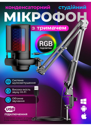 Мікрофон OnePro ME6s конденсаторний для ПК і ноутбуків з потужним студійним дизайном забезпечує високу чіткість і деталізацію голосу. Підключення через USB Type-C або 3.5 мм mini-jack без додаткових драйверів для Windows Mac та мобільних пристроїв. Ідеально підходить для стримів на Twitch YouTube, онлайн уроків, подкастів, запису вокалу та музики. Для ігор забезпечує комфортне голосове спілкування з друзями у всіх програмах. Багатий і чистий звук голосу та акустичних інструментів забезпечується кардіоїдною діаграмою направленості і підвісною конструкцією. Регульований кут нахилу і кардіоїдна діаграма з мінімальним фоновим шумом дають теплий, насичений і чіткий звук. USB підключення забезпечує миттєвий запуск і економію часу. У комплекті металевий штатив з поворотом на 360° для зручного позиціонування. Всенаправлений відбивач відсікає небажане ехо реверберацію і сторонні шуми. Створіть власну домашню студію запису з допомогою поп-фільтра та регуляторів MIC Volume Echo. Мікрофон OnePro ME6s ідеальний для подкастів, відеоблогів, озвучення онлайн уроків, стримів і геймерських трансляцій. RGB підсвітка створює стильну атмосферу, а довгий кабель дозволяє підключати до ПК ноутбука або телефону. Підключення без налаштувань і висока якість передачі сигналу роблять його незамінним для професійного та домашнього використання. Замовляйте мікрофон OnePro ME6s вже сьогодні та підніміть якість ваших стримів і записів на новий рівень
