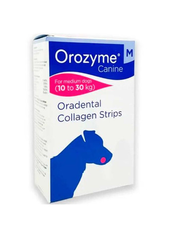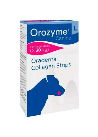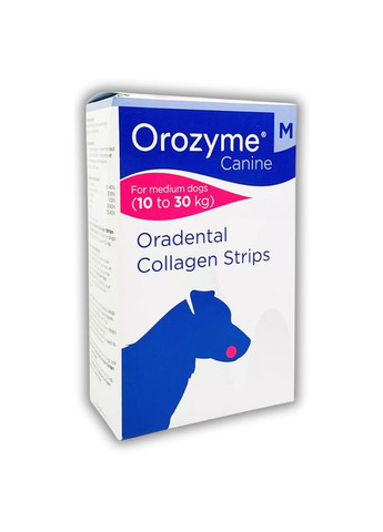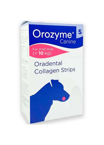 Під час жування смужки Орозим не розпадаються завдяки спеціальній технології обробки колагеном. У процесі поїдання продукту задовольняється природний інстинкт вихованця - жування. Смужки не містять цукру, штучних барвників, підсилювачів смаку. Низький вміст жиру, гіпоалергенність засобу робить його придатним для собак із чутливим травленням та зайвою вагою. Особливості та переваги: сприяють усуненню неприємного запаху з рота; усувають зубний камінь та наліт (абразивний ефект); можна підібрати для представників маленької, середньої чи великої породи; не містять цукру, штучних барвників, підсилювачів смаку; містять запатентовану формулу ферментів, що покращує антибактеріальну дію слини собак; легко засвоюються (низький відсоток жиру); гіпоалергенний продукт; не мають протипоказань; підходять для щоденного догляду за ротовою порожниною та зубами; схвалено та рекомендовано ветеринарами; задовольняють природний жувальний інстинкт собаки. Склад: колагенові пластини з яловичої шкіри, запатентована система LPO, амілаза, глюкоамілаза, глюкозооксидаза, лактопероксидаза, тіоціанат калію, супероксиддисмутаза, лізоцим, лактоферин. Аналітичні складові: сирий протеїн – 75,10%, сирі жири 4.10%, сира клітковина <0,5%, сира зола 4.50%, вологість 13,30%. Розміри: Small: для собак вагою до 10 кг (приблизна кількість пластин в упаковці - 20 шт.); Дозування: 1 смужка на день, після їди. Застереження: якщо собака схильна швидко поглинати їжу, контролюйте процес жування смужки, щоб переконатися, що продукт належним чином пережовується. Умови зберігання: зберігати в сухому місці при кімнатній температурі. Дуже важливо добре закривати алюмінієвий пакет після кожного використання, щоб запобігти втраті ефективності продукту. Фасування: Large (>30 кг); Small (<10 кг); Medium (10-30 кг)
