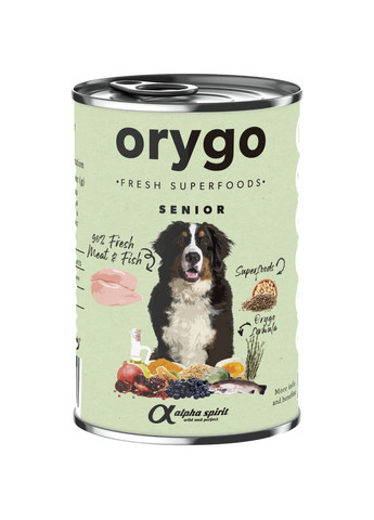 ORYGO Senior ОРІГО Сеньйор Натуральний збалансований і здоровий раціон для старіючих собак усіх порід Повнораціонний напіввологий корм з курятиною та бобовими для дорослих старіючих собак Рецептури ОРІГО готуються делікатно за допомогою холодного віджиму при низьких температурах зі 100% свіжих інгредієнтів. турботою, де основним пріоритетом вибору є здоров'я та відмінне самопочуття вашого старіючого собаки. Раціон ОРІГО Сеньйор – це: 85% свіжого м'яса, включаючи м'язове м'ясо, печінку та серце + суперфуд нут + Оригоформула для собак сеньйорів Оригоформула для сеньйорів Оріго формула для старіючих собак створена з увагою до специфічних потреб літніх тварин, щоб повністю забезпечувати цей період. Кожен інгредієнт Орігоформули Сеньйор відібраний з особливою старанністю для того щоб забезпечити вашому вихованцю, незалежно від породи більше життєвих сил і відмінне самопочуття. Орігоформула Сеньйор виготовлена з якісних інгредієнтів і призначена для забезпечення здоров'я та довголіття. М'ясні органи: м'ясні органи, такі як серце і печінка, є джерелом важливих нутрієнтів. Печінка багата на залізо і вітаміни, а серце забезпечує таурином, необхідним для здоров'я і серця. Суперфуд: Нут Нут – це відмінне джерело рослинних протеїнів, клітковини та різних нутрієнтів, таких як залізо, цинк та вітаміни групи В. Клітковина у складі нуту сприяє здоров'ю травної системи собак, покращує та регулює роботу кишечника, запобігаючи таким проблемам як запори. Також високий вміст протеїну допомагає розвитку та підтримці м'язової маси. Вживаючи приготований нут, без додавання приправ, у складі збалансованих раціонів, собаки отримують всю поживну користь цього інгредієнта. Переваги раціонів ORYGO для собак сеньйорів P Здоров'я собак – це пріоритет №1 при створенні рецептур ОРІГО P Формула створена спеціально для старіючих собак, враховуючи нижчий вміст жиру. P Мінімальний процес обробки інгредієнтів при приготуванні допомагає зберігати всю їхню природну користь. P Ідеально для вибагливих собак. Завдяки дбайливому холодному віджиму ORYGO мають високу поїдання. P Мінімум 85% свіжого м'яса у складі, включаючи м'язове, серце та печінку P Легко засвоювана формула з додаванням пребіотиків для підтримки здоров'я мікрофлори кишечника. P 100% свіжих інгредієнтів у складі P Додані суперфуди – посилюють раціон поживними речовинами P Без зерна, штучних барвників та ароматизаторів Як готується корми ORYGO: P На 100% виготовлено зі свіжих інгредієнтів P Без екструзії P Без штучних барвників та ароматизаторів P (м'ясо, печінка, серце), 30% свіжа риба, частково гідролізований крохмаль, бобові (чечевиця, квасоля) 4%, рослинний гліцерин. ORYGOFORMULA 2,6%: продукти ферементації S. Cerivisiae (МОС), куркума, оливкові поліфеноли, інулін (джерело FOS), м'якоть цикорію, фенхель, кіноа, шавлія, маніок їстівний, екстракт танінів), валеріана, чебрець, орегано, розмарин, дегідратована алоїну, розторопша (джерело силімарину), гінкго білоба, екстракт артишоку (джерело цинарину), прополіс, яєчна мембрана X), олія форелі 500 мг/кг (джерело омега-3, ЕПК, ДГК). Харчові добавки (на кг): вітаміни (МО): Вітамін А (3a672a) 22158, вітамін D3 (3a671): 1418, вітамін Е (3a700): 443, мікроелементи (мг): 3b503 (марганець: 8,8), 3 3b201 (йод: 1,4). Натуральний антиоксидант: збагачений токоферолами екстракт з рослинних олій. Аналітичні складові: сирий білок: 27%, сира клітковина