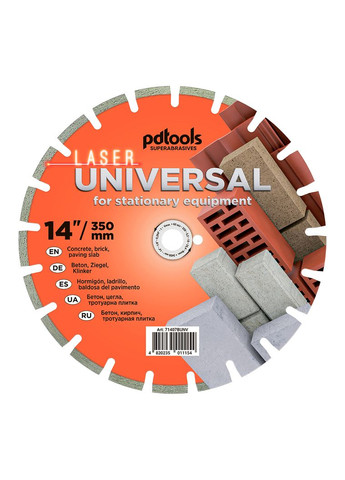 Круг алмазний вiдрiзний 1A1RSS/C1 350 UNIVERSAL за рахунок високої щільності сегментів, які закріплені на корпусі методом лазерного зварювання, з легкістю впорається з бетоном, тротуарною плиткою та цеглою. Призначений для використання бензорізами та швонарізчиками.