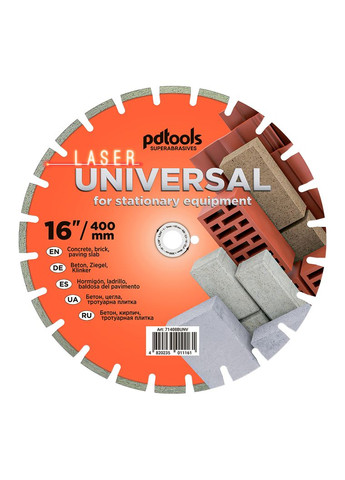 Круг алмазний вiдрiзний 1A1RSS/C1 400 UNIVERSAL за рахунок високої щільності сегментів, які закріплені на корпусі методом лазерного зварювання, з легкістю впорається з бетоном, тротуарною плиткою та цеглою. Призначений для використання бензорізами та швонарізчиками.