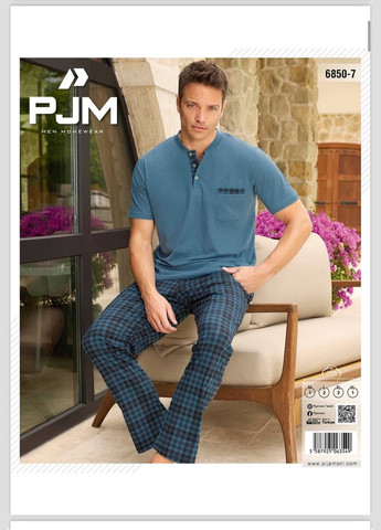 Піжама-трійка у клітку: штани, майка, халат з поясом.