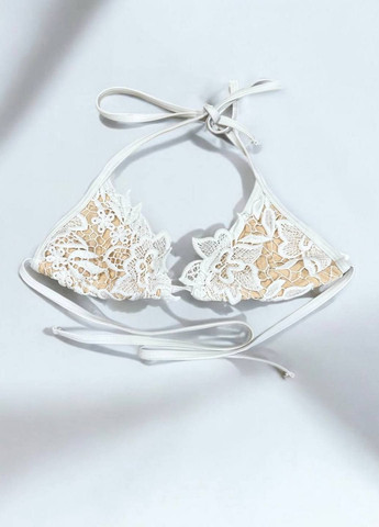 Модель виконана з еластичної тканини з м’якою підкладкою, приємною до тіла. Трикутні чашки без вкладишів і кісточок забезпечують природну посадку, а тонкі зав’язки на шиї та застібка ззаду дарують надійну фіксацію. Особливий акцент створюють декоративні перехресні бретелі спереду, що додають ефектності зоні декольте.