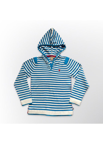 Дитячий светр з капюшоном Виробник: QuadriFoglio, Польща Якісний стильний та комфортний тонкий бавовняний светр із капюшоном у кремово-блакитну смужку. Склад: 100% бавовна