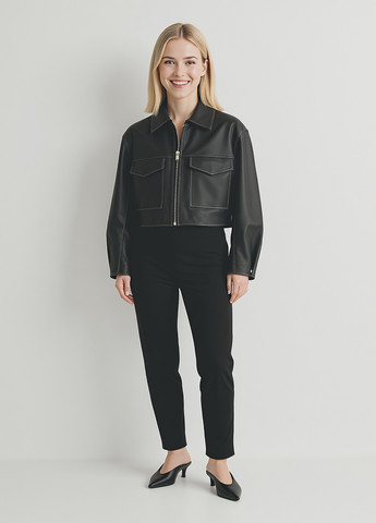 Застібка на блискавку та ґудзик, дві кишені з боків, дві прорізні кишені ззаду. На моделі товар в розмірі M. Зріст моделі: 190 см.