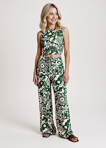 Колір Зелений / Матеріал Поліестер / Фасон Вкорочені / Висота посадки Висока талія / Візерунок Однотонний