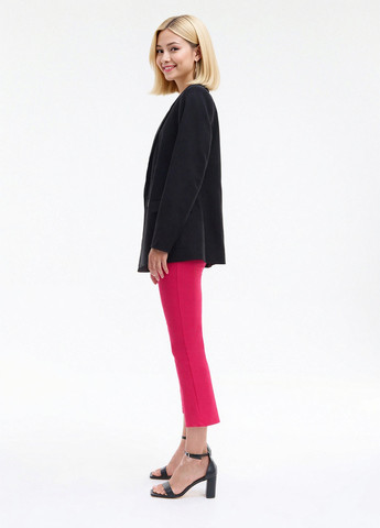 Однотонні штани, застібка на блискавку та гудзик, злегка розкльошені штанини, довжина 7/9.
