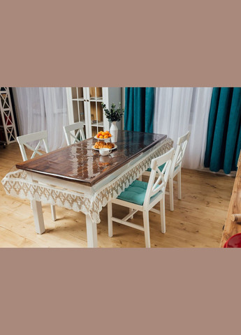 Силіконова Скатертина з Бежевим мереживом Купити прозору Силіконову Скатертина на кухонний стіл — це означає придбати гарну та практичну річ, яка захищатиме поверхню стільниці від теплових і механічних пошкоджень, а також від заявок подряпин і відколів. Силіконова скатертина зі Стразовою Золотою Стрічкою запобіжить появі плям на поверхні меблів від пролитого соку, вина, кави та інших напоїв. Сучасний і вишуканий дизайн підійде під будь-який інтер'єр приміщення. Можна замовити будь-який розмір і форму скатертини згідно з Вашими розмірами та формами столу. Матеріал скатертини дуже міцний, щільний і довговічний. Скатертина не вимагає особливого догляду (досить використовувати неабразивні засоби).