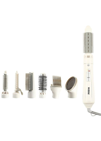 Фен - щітка мульти стайлер з іонізацією Rozia HC-8110 7в1 500 Вт для укладання волосся та завивки волосся з насадками Білий Rozia HC-8110 7в1 - це багатофункціональний пристрій з безліччю різноманітних насадок, що дозволяють самостійно робити різні укладання та зачіски. Rozia HC-8110 може працювати у двох швидкостях подачі повітря та у двох температурних режимах. З елементів, що входять в комплект, варто відзначити щілинну насадку, наявність дифузора і щипців, а також 4 різних гребінця і можливість створювати стильні локони. Приємний бонус від Rozia HC-8110 це функція іонізації вона додасть вашому волоссю блиск, гладкість і попередить їхнє сплутування. Характеристики: Виробник: Rozia Тип: Фен - щітка Тип живлення: Мережа 220 В Потужність: 500 Вт Кількість насадок: 7 Кількість режимів роботи: 3 Кількість швидкостей: 2.0 Кількість температурних режимів: 2 Турмалінове покриття: Так Функція іонізації: Так Незалежне регулювання швидкості та температурного режиму: Так Концентратор: Так Дифузор: Так Насадка для випрямлення волосся: Так Керамічне покриття: Так Складна ручка: Ні Захист від перегріву: Так Терморегулятор: Так Регулювання швидкості: Так Поворот шнура на 360 градусів: Так Петелька для підвішування: Так Комплектація: Фен-плойка для волосся 7 в 1 Rozia HC-8110 Кількість насадок: 7 Упаковка
