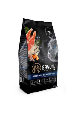 Корм класу холістик для кошенят. Повнораціонний сухий корм для котів Savory пробудить у вашого улюбленця ту життєву енергію, про яку він навіть сам ще не знав. Ексклюзивна рецептура корму була розроблена досвідченими європейськими спеціалістами з харчування домашніх улюбленців. Використовуючи холістичний підхід, вдалося створити біологічно відповідний, здоровий раціон для котів, який є корисним і смачним настільки, що лапки оближеш. Поєднання добірних натуральних інгредієнтів дає можливість піклуватися про здоров’я чотирилапого, а вишуканий смак – дарувати йому насолоду від щоденного споживання корму Savory. Сухий корм для кошенят Savory містить свіже м'ясо індички та дегідратоване м'ясо курки, ягоди, фрукти та овочі. Ці компоненти створені природою, щоб організм малюків отримав необхідні поживні речовини для зміцнення імунітету, правильного розвитку та здорового росту. Переваги: Свіже м'ясо індички та дегідроване м'ясо курки – цінне джерело білків, які легко засвоюються та надають корму неперевершеного смаку. Унікальний комплекс пребіотиків, пробіотиків і мінералів підтримує здорове травлення та зміцнює імунітет. Підтримання оптимальної ваги – рівномірний набір м’язової маси без відкладання жиру. Суперфуди для гармонійного розвитку та комфорту травлення. Містить хондропротектори для здорового формування, зміцнення та захисту суглобів. Ягоди, фрукти і овочі – джерело антиоксидантів, вітамінів і флавоноїдів для довгого та здорового життя котика. Не містить штучних барвників і штучних ароматизаторів – підхід «NafNac». Особливості: Індичка - високобілкове дієтичне м`ясо, яке легко засвоюється і має у своєму складі життєво важливі мінерали: селен, цинк, натрій, фосфор, магній, калій та вітаміни групи B. Курка – низьковуглеводне м'ясо, яке є чудовим джерелом протеїну та збагачує корм мінералами і вітамінами. Зелений горох і рис. Білок зеленого гороху містить амінокислоти: метіонін, цистин, триптофан; має низький глікемічний індекс. У поєднанні з корисними цільнозерновими злаками (рисом) засвоєння такого протеїну відбувається максимально ефективно. Гарбуз - цінний дієтичний продукт, натуральне джерело корисної для кишківника клітковини, вітамінів і мінеральних речовин. Сушений антарктичний криль - натуральне джерело ейкозапентаєнової та докозагексаєнової кислот, необхідних кошенятам для росту, гостроти зору, нормального функціонування мозку й здорової шкіри і шерсті. Сушена лохина – природний антиоксидант для боротьби з вільними радикалами, захисту і відновлення клітин організму. Сушена журавлина містить антиоксиданти і біофлавоноїди для профілактики розвитку шкідливої мікрофлори в сечовидільній системі. Ці ягоди підтримують здоров'я сечовивідних шляхів, регулюють кислотність сечі і є хорошим кишковим антисептиком. Яблука є джерелом пребіотиків (олігосахаридів), що покращують здоров'я мікрофлори кишечника. Шпинат – джерело вітамінів групи В, знижує процеси окислення в організмі, нормалізує артеріальний тиск. Корм Savory – корисне може бути смачним! Склад: дегідратоване м`ясо курки (30%), свіже м`ясо індички (15%), жир тваринного походження (курка, 11%), зелений горох, білий рис, коричневий рис, гідролізований протеїн тваринного походження (6,5%), сушений буряк, лососева олія (2%), мінерали, сушені пивні дріжджі, сушений цикорі