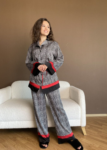 Розкішна жіноча піжама, яка поєднує стиль, комфорт і якість. Складається з сорочки на гудзиках і вільних штанів кльош. Виготовлена з високоякісної тканини шовк-Армані, що дарує приємні відчуття на шкірі та забезпечує комфорт протягом усього дня і ночі. Особливості: Сорочка на гудзиках з рукавами-ліхтариками Штани вільного крою (кльош) Яскравий, стильний принт Тканина: преміальний шовк-Армані Дуже м’яка та приємна на дотик Ідеально підходить як для сну, так і для домашнього відпочинку. Артикул: 1744