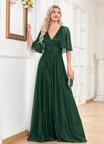 Матеріал Поліестер / Колір Темно-зелений / Фасон На запах, Кльош / Довжина виробу Максі / Стиль Вечірній