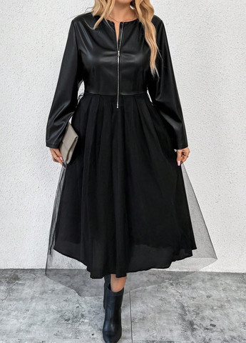 Довга повсякденна сукня SHEIN Clasi Plus Size. Сукня з круглим вирізом та довгими рукавами. Розкльошений поділ та висока талія. Сукня А-силуету. Виготовлена із 100% поліестеру з легкою еластичністю. Застібається на блискавку.