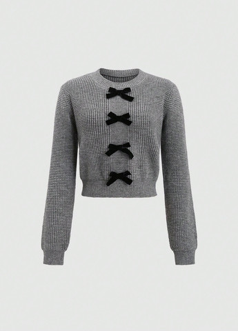 Жіночий светр SHEIN Sweetro з круглим вирізом та бантом, довгий рукав. Цей светр має стандартний крій та бант спереду. Тканина з високою еластичністю та щільним подолом.