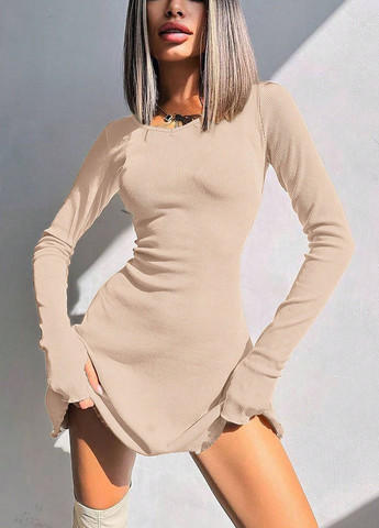 Матеріал Поліестер, Трикотаж / Колір Бежевий / Фасон Кльош / Довжина виробу Міні / Стиль Кежуал