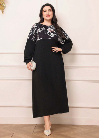 Сукня-світшот – Lacomfia. Ця елегантна сукня з квітковим принтом та круглим вирізом. Вона має вільний крій із рукавами-бішопами. Тканина трохи тягнеться для комфорту. Сукня має звичайний поділ та круглий виріз.