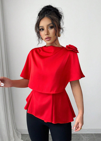 Колір Червоний / Фасон З баскою / Стиль Вечірній, Кежуал / Візерунок Однотонний / Фасон рукава Суцільнокроєний