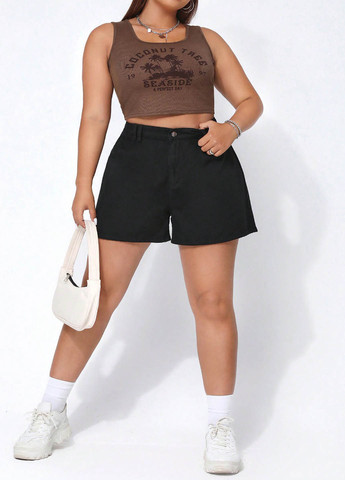 Джинсові шорти великих розмірів SHEIN CURVE+. Ці джинсові шорти ідеально підходять для повсякденного носіння. Застібка на блискавку та середня лінія талії. Шорти виготовлені із бавовняного деніму. Мають кишені та класичний крій. Рекомендується прати у пральній машині.