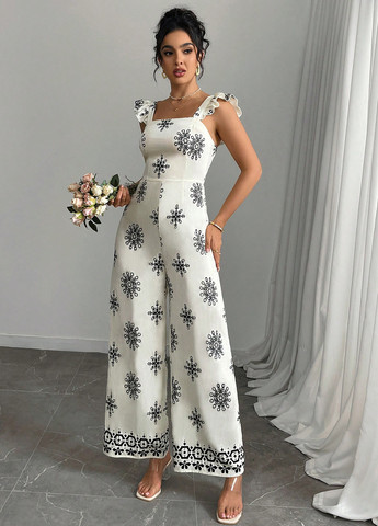 Жіночий комбінезон Breezaya. Цей елегантний комбінезон із квадратним вирізом та високою талією. Рукави з оборками і відкриті спинки. Подовжений комбінезон прямого крою. Рекомендації щодо догляду: машинне прання або професійна хімчистка.
