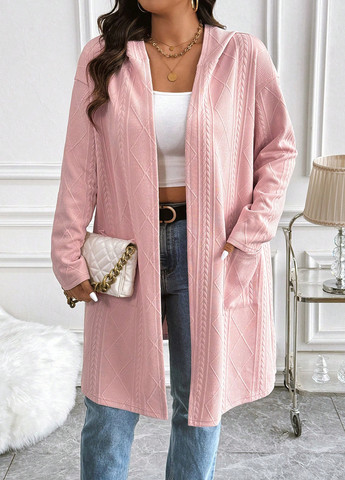 Повсякденний кардиган із капюшоном SHEIN Essnce Plus Size ідеально підходить для осені. Він має вільний крій та капюшон. Включає кишені та рукави з приспущеним плечем. Він виготовлений із злегка еластичної тканини і має стандартну форму подола.