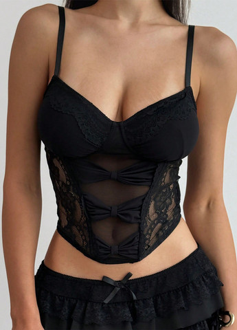Колір Чорний / Матеріал Поліестер / Візерунок Однотонний / Декор Мереживо / Стиль Повсякденний