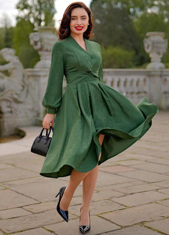 Матеріал Поліестер / Колір Зелений / Фасон Кльош / Довжина виробу Міді та нижче коліна / Стиль Святковий, Кежуал