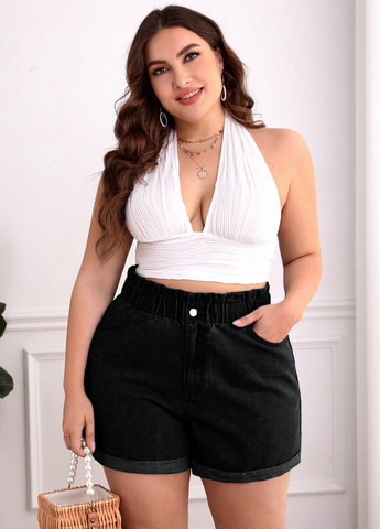 Джинсові шорти доступні у великих розмірах. Ці шорти підходять для повсякденного носіння навесні та влітку. Вони мають стандартний крій, вишивку та кишені. Тканина не тягнеться. У комплект входять застібка-блискавка та застібка на високій талії.
