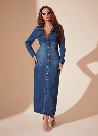 кешбек від 115 ₴-48%772 ₴1 158 ₴603 ₴Безкоштовна доставка зSHEIN синя джинсова, кежуал сукня сукня-сорочка однотонна довгий бавовна, джинс — виробництво КитайПроданоМатеріал Бавовна, Джинс / Колір Синій / Фасон Сукня-сорочка / Довжина виробу Міні / Стиль Денім, КежуалНаша джинсова сукня Slim Fit – це повсякденний облягаючий дизайн із джинсового матеріалу середнього витирання, довгими з...