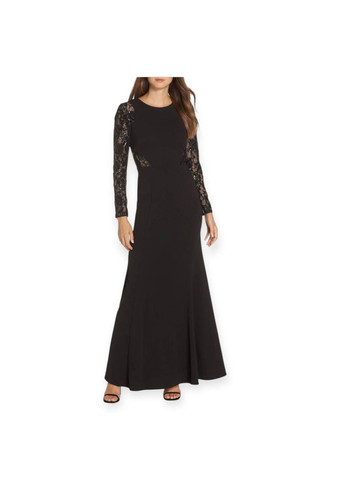 Коротке плаття, що обтягує ваш силует у чорному плетінні Довгі рукави, солодкі V-подібні вирізи та верхні задні квіткові мережива та напівпрозорі плівки