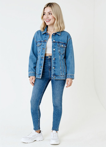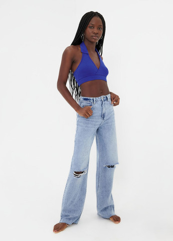 Колір Синій / Фасон Скінні / Висота посадки Висока талія / Декор Потертості / Сезонність Демісезон