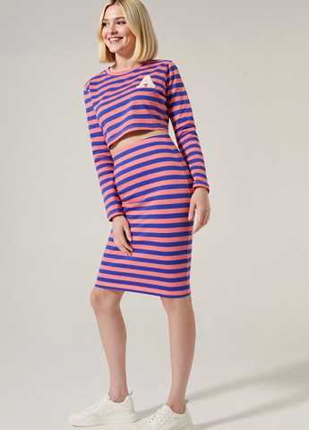 Спідниця міді в смужку, пояс на резинці, візерунок у смужку.
