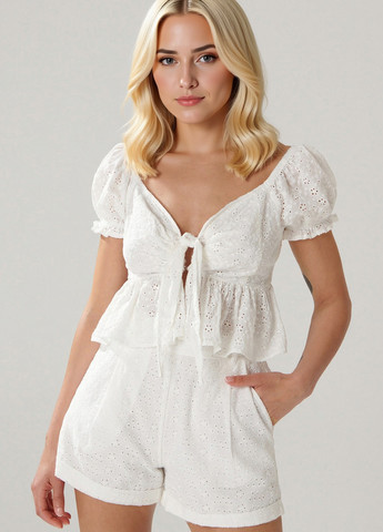 Колір Білий / Матеріал Бавовна / Візерунок Однотонний / Декор Оборки, Вишивка рішельє / Стиль Кежуал