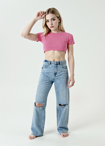 Кроп топ із трикотажу в рубчик, обтислий фасон кругла горловина короткі рукави. На моделі розмір XL/42. Зріст моделі: 175 см.