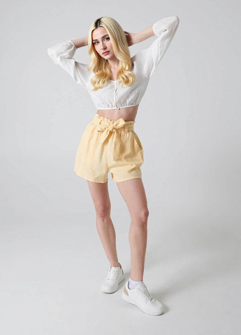 Шорти зі шнурком на талії, еластична талія, декоративний вузол, дві кишені, трикотаж з тканиною на петлі всередині.