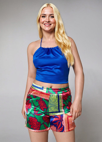 Кроп топ із зав’язкою, обтислий фасон вузькі бретельки. На моделі розмір XL/42. Зріст моделі: 176 см. На моделі розмір S/36. Зріст моделі: 175 см.