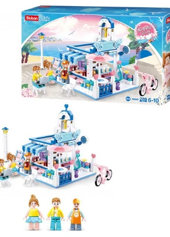 Конструктор SLUBAN Курорт M38-B0961 - це набір із 439 деталей, призначений для дітей віком від 6 до 9 років. Набір дозволяє зібрати мініатюрний курортний комплекс, який включає готель, басейн, зони для засмагання та транспортні засоби. У комплект також входять фігурки персонажів та відпочивальників.