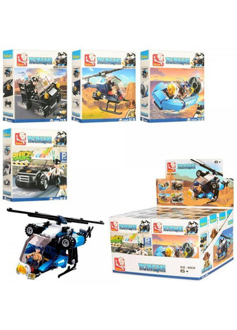 Конструктор Sluban Поліція M38-B0638 Конструктор Sluban Поліція M38-B0638 буде гарним подарунком для малюка. Виконаний із якісного пластику. Ваша дитина за допомогою конструктора зможе грати щодня та розвиватися. Характеристики: Тип: конструктор Матеріал: пластик Вік: від 6 років Кількість деталей: від 73 Кількість в упаковці: 8 шт Кількість дизайнів: 4 шт Упаковка: коробка Розмір упаковки: 28,5 х18, 5х17 см Колір: різні кольори Виробник: Sluban Комплектація: Транспорт Фігурка