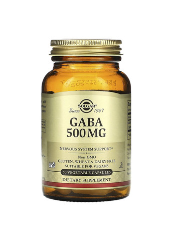 Детальний опис: GABA, Solgar, 500 мг, 50 рослинних капсул Даний продукт є добавкою, що містить ГАМК (гамма-аміномасляна кислота), призначену для поліпшення деяких функцій організму Розмір порції: 1 капсула Кількість на порцію % від добової потреби ГАМК (гамма-аміномасляна кислота) 500 мг * * Добова потреба не визначена.