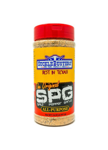 Це справжнє втілення смаку Техасу, створене спеціально для яловичини. Збалансоване поєднання спецій та трав, що надає стейкам, ребрам та brisket неймовірну глибину смаку та аромат диму. Незалежно від того, чи ви досвідчений пітмайстер або любитель барбекю на задньому дворі, ця приправа стане вашим незамінним помічником, щоб надати вашим стейкам, жаркому та грудинкам справжній техаський колорит. Ретельно підібрана суміш спецій віддає данину традиціям, одночасно додаючи сучасну родзинку у ваш гриль-репертуар. Від першого шипіння до останнього пікантного укусу, яловича приправа SuckleBusters 1836 Beef Rub гарантує незабутні та автентичні враження від BBQ. Розкрийте справжній потенціал ваших яловичих творінь і відчуйте суть техаського смаку щоразу, коли ви її використовуєте! Смаковий профіль: сіль, подрібнений чорний перець, часник. Рівень гостроти: середній (чорний перець) 3/5. Використовувати з: яловичиною, свининою, куркою.