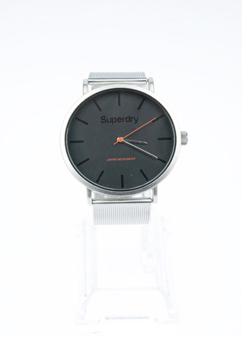 Superdry - оригінальний і привабливий годинник. Годинник має сріблястий ремінець і корпус сріблястого кольору. Циферблат чорного кольору прикрашений логотипом Superdry та чорними черговими мітками.