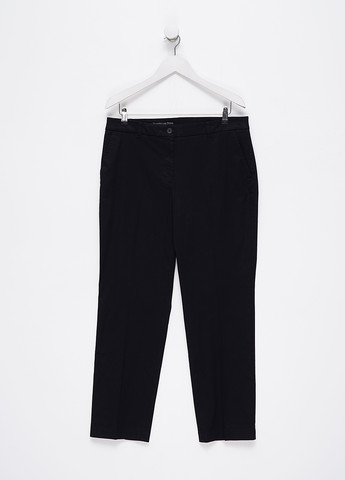 Штани однотонні, прямі, застібка на блискавці, гачках та гудзику, сзаду дві прорізні кишені, дві бокові кишені з відрізним бочком.