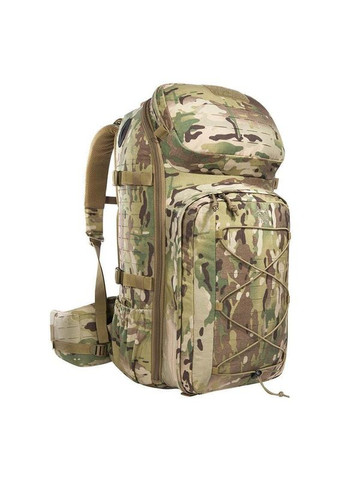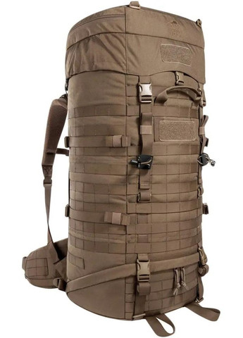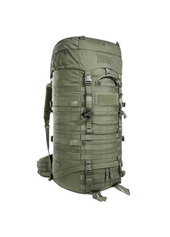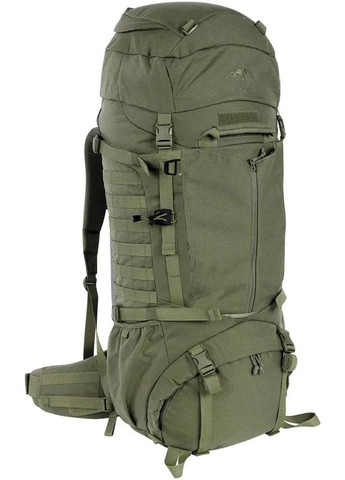 Рюкзак Tasmanian Tiger Mil OPS Pack 80+24 — великий тактичний рюкзак з можливістю розширення об'єму з 80 до 104 л. Модель виконана з міцного нейлону 700D, здатного витримувати великі навантаження. Рюкзак має містке основне відділення, яке можна розділити на дві частини за допомогою спеціального клапана, для можливості зберігання чистих і брудних/мокрих речей окремо. Завантаження речей здійснюється трьома способами: зверху, спереду посередині та спереду знизу. Вміст захищений снігозахисним клапаном-скруткою, який фіксується за допомогою ременів із фастексами та знімною, регульованою за висотою кришкою-клапаном. Модель обладнана стропами MOLLE для кріплення підсумків і обладнання, додатковими кишенями для дрібниць, еластичною стропою та клапаном на передній стороні для фіксації шолома. Також має велику кількість стяжних ременів для регулювання посадки та два знімні бічні підсумки, об'ємом по 12 л, сумісні з гідратором. Рюкзак обладнаний двома ручками для перенесення: на фронтальній і на тильній стороні. Цю модель обладнано підвісною системою перенесення V2, яка ефективно перерозподіляє 70-80% всієї маси рюкзака на знімний трисекційний стегновий ремінь за допомогою рами з двох алюмінієвих шин у вигляді перевернутої "V" і двох коротких стрижнів зі скловолокна. Це значно зменшує навантаження на хребет і знижує центр ваги системи, що покращує стійкість під час пересування. Решта 20-30% припадають на плечові ремені анатомічної форми з можливістю регулювання під різний зріст.