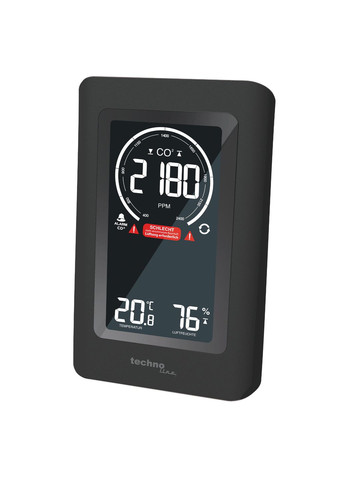 Багатофункціональний прилад Technoline WT549 White поєднує настільний годинник з будильником, домашню погодну станція з виносним температурним датчиком і прогнозом погоди, і при цьому проектує час і температуру на стелю або стіну, що дуже зручно в темний час доби. Годинник має масу корисних функцій, таких як два будильника з окремим налаштуванням, відображення тенденції зміни тиску, мінімальних і максимальних значень температури, можливість прийому зовнішньої температури від 3 виносних датчиків, зміна кута проекції, прогноз погоди з налаштуванням і багато іншого. При цьому проекційний годинник Technoline WT549 White має привабливий зовнішній вигляд, можливість постійної зміни або налаштування бажаного кольору підсвічування дисплея. Працює годинник як від блоку живлення (з постійною підсвічуванням), так і від батарейок. Функції: Годинник: Механізм: електронний, цифровий Функція радіоконтролю часу DCF77: автоматична синхронізація часу по радіосигналу DCF77 з Майнфлінгена (Німеччина). Сигнал формується на основі даних, отриманих від трьох атомних годинників, і похибка становить менше 1 секунди в 1 мільйон років. Передавач сигналу точного часу DCF77 здійснює передачу даних в радіусі 1900-2100 км, і охоплює більшу частину території України. Зверніть увагу, що Україна знаходиться на кордоні радіуса дії сигналу, і якість прийому сигналу в різних регіонах може відрізнятися і залишатися нестабільною. В окремих районах Дніпропетровської, Запорізької, Харківської, Донецької і Луганської областей сигнал може бути відсутнім. В такому випадку необхідно відключити прийом радіосигналу і скористатися ручними настройками. Можливість відключення сигналу радіоконтроля і вибір ручного встановлення часу і дати Формат часу: 12/24 г Вибір часового поясу (поправка на час) -1/+2 часа Точність ходу годинника: 1 с в 1 млн років (При прийомі сигналу DCF77), +/- 30 сек/міс (точність електронного механізму) Будильник із функцією повтору «snooze», яку можна налаштовувати (повтор в діапазоні від 1 до 30 хв) Прогноз погоди: Прогноз погоди на 12-24 години (дисплей відображає погоду, яка за прогнозом встановиться через 12-24 години) Символьний прогноз погоди. На дисплеї відображаються піктограми (сонячно, змінна хмарність, хмарно, дощ, дощ з грозою) Атмосферний тиск: Відображення тенденції зміни атмосферного тиску (Стрілка вниз - тиск падає / Стрілка вверх - тиск зростає) Температура в приміщенні: Одиниці виміру: ºС/° F Діапазон виміру: від -9.9°C до +50°C (от +14°F до +122°F) Дискретність виміру: 0.1°C Точність виміру: +/- 1C° Реєстрація та відображення мінімальних і максимальних значень температури Відображення тенденції зміни температури (Стрілка вниз - температура падає / Стрілка вгору - температура зростає) Зовнішня температура: Одиниці виміру: ºС/° F Діапазон виміру: від -40°C до +70°C (от -40°F до +158°F) Дискретність виміру: 0.1°C Точність виміру: +/- 1C° Реєстрація та відображення мінімальних і максимальних значень температури Відображення тенденції зміни температури (Стрілка вниз - температура падає / Стрілка вгору - температура зростає) Можливість відображення показань температури від 3-х зовнішніх датчиків Календар: Відображення: дати / місяця / дня тижня на 7-ми мовах: (Англійській, Німецькій, Італійській, Французькій, Датській, Голландській, Іспанській) Передача даних від зовнішнього датчика температури: Частота передачі 