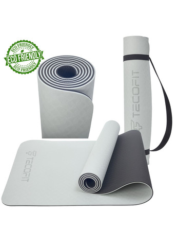 Килимок для йоги та фітнесу TECOFIT NBR 183x61x1 см Покращуйте свою практику йоги та фітнесу з екологічним килимком TECOFIT, виготовленим з безпечного та інноваційного матеріалу NBR. Він поєднує комфорт, стійкість і турботу про навколишнє середовище. Особливості: Екологічний матеріал: Безпечний для здоров’я та природи. Без запаху: Не виділяє неприємних запахів. Універсальне застосування: Підходить для дому, студії, парку та подорожей завдяки легкій вазі та компактності. Підтримка для всіх рівнів: Оптимальна м’якість і стабільність для комфортного виконання вправ. Антиковзка поверхня: Забезпечує надійне утримання під час тренувань. Термоізоляція: Зберігає тепло під час занять на прохолодній підлозі. Звукоізоляція: Дозволяє зосередитися на тренуванні без зайвого шуму. Простий догляд: Легко очищується вологою ганчіркою. Додаткова товщина: Підвищує комфорт для суглобів і спини. Характеристики: Тип: Килимок Довжина: 183 см Ширина: 61 см Товщина: 1 см Матеріал: NBR (екологічно чистий синтетичний каучук) Додаткові властивості: Антиковзка поверхня, термоізоляція, звукоізоляція, легкий догляд, без запаху